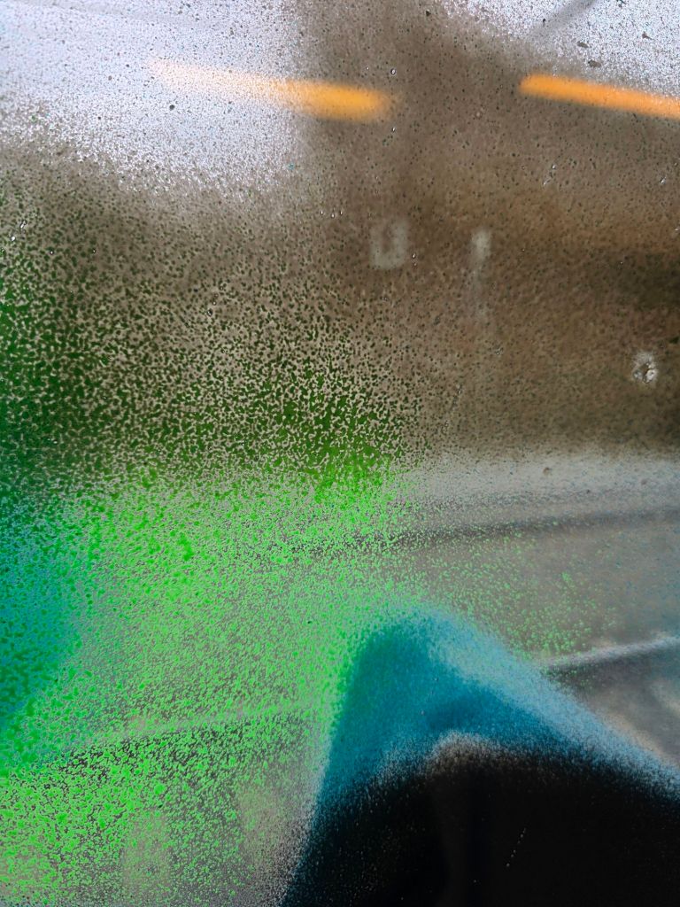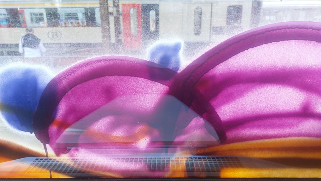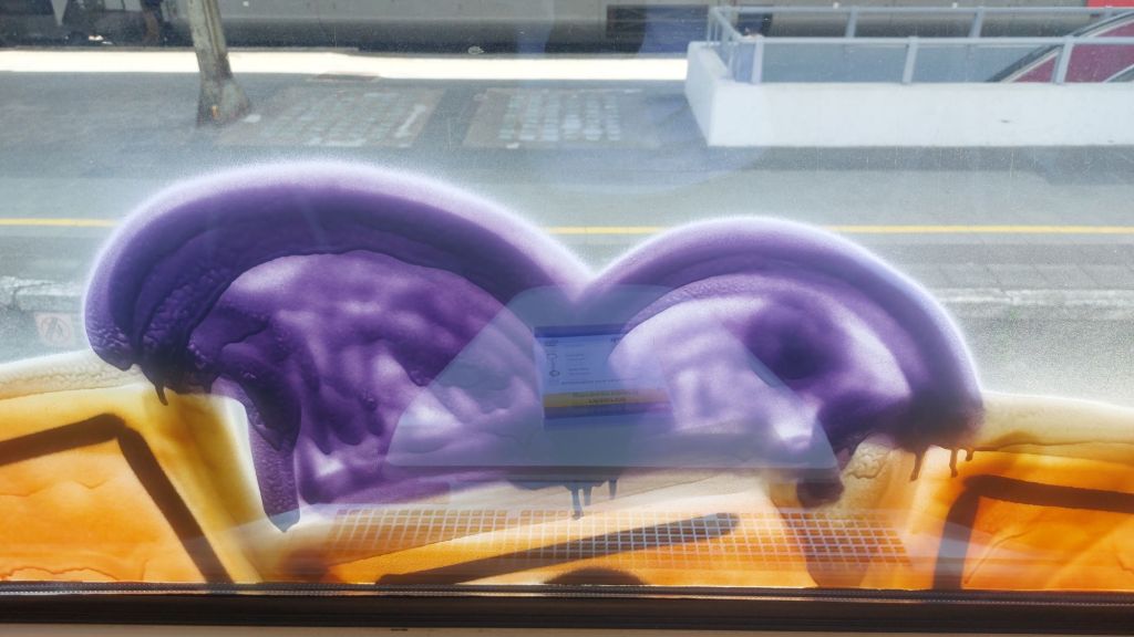 The more controversial side of a piece on the train: the passenger’s perspective. You guys ever stop to admire this? Sit with it, see what kind of thoughts and feelings come up. To me, its part of the storytelling. Alittle spray paint never hurt anyone. The problem is: People are used to the same. Do the same, eat the same, dress the same, talk the same,catch the same train, go to the same job, same house. When you break that cycle, subconsciously they just snap. I dont mean like go violent or go bananas, what I mean is the synaptic transmissions that their neurotransmitters call their “highway” snaps…you break their pattern of thought, their way of life. The drone of life, same same same. Window clean window clean window clean, today….someone left some stuff on here. Someone’s creativity, once again…let’s say their Art, struck a chord within someone else and thats how we are all connected in a way. Its a big fuckin web of ‘Human Experience’ and anyone can make a difference in someone’s day, whether big or small. Keep Going….